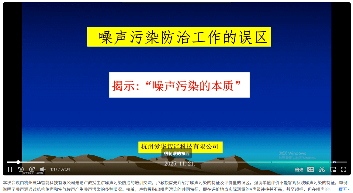 2025年11月21日,杭州愛華智能科技有限公司有幸邀請了原廣州市環(huán)境監(jiān)測中心站教授級高級工程師盧慶普老師前來交流指導,并通過線下和線上視頻會議模式,為從事噪聲監(jiān)測及污染防治工作的廣大客戶朋友做了“噪聲污染防治工作誤區(qū)與本質探析”專題培訓交流會。
